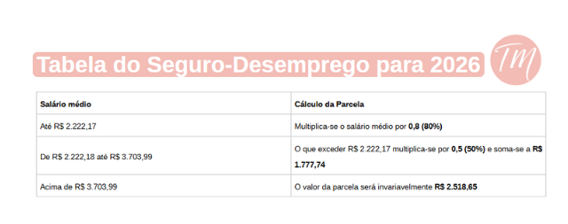 O cálculo do benefício considera a média salarial dos três meses anteriores à demissão. Para quem ganhava até R$ 2.222,17, a parcela corresponde a 80% do salário médio. Entre R$ 2.222,18 e R$ 3.703,99, aplica-se uma fórmula mista definida pelo governo.